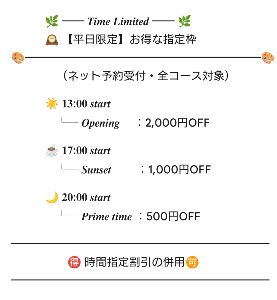 🎁時間指定のお得な割引特典